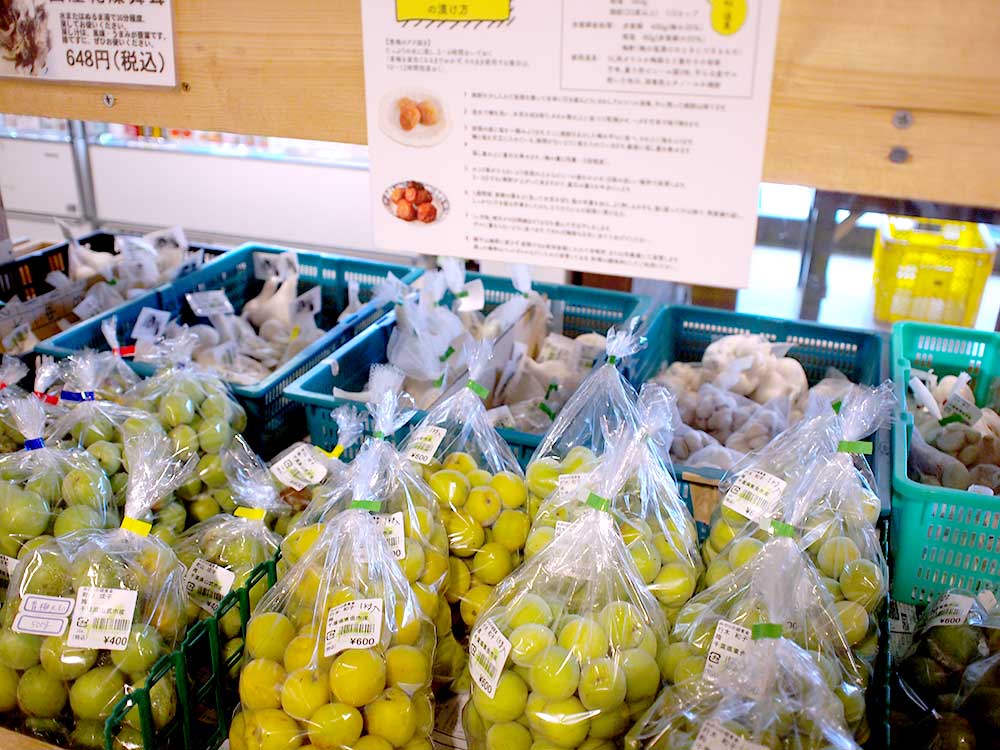 道の駅 みのりの郷東金 東金マルシェに地元産青梅や土ラッキョウがたくさん並びました。