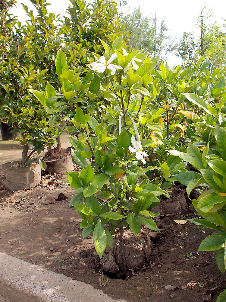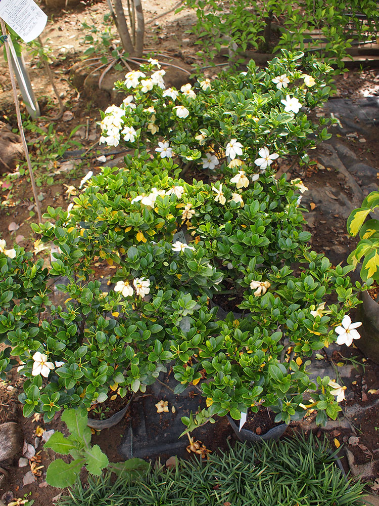実もなります。ご存じの通り、お正月の栗きんとんや黄色いたくあんの色付けに使用するものですね。