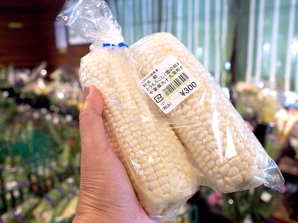 糖度が高く皮の柔らかな白いトウモロコシや、昨日ご紹介をしていた白いナスも本日並んでいますよ。
