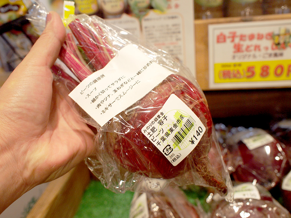 そのほかおススメは、肉厚な葉を茹でたり炒めたりしてヌルっとした食感がおいしいツルムラサキ、「食べる輸血」といわれる鉄分ミネラル豊富なビーツ、そして、東金自慢の「極三わけねぎ」もたくさんございます。
