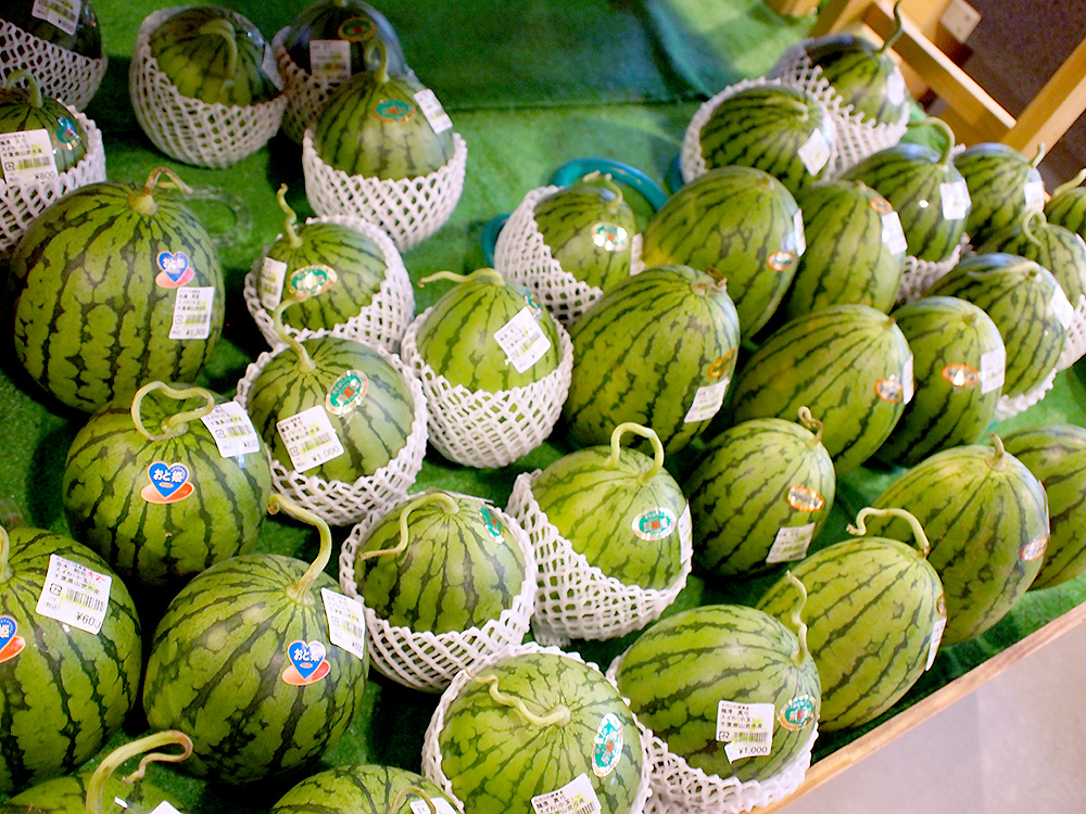 また本日は、ご贈答にピッタリの大玉スイカのほか、小玉スイカがたくさん並んでいます。