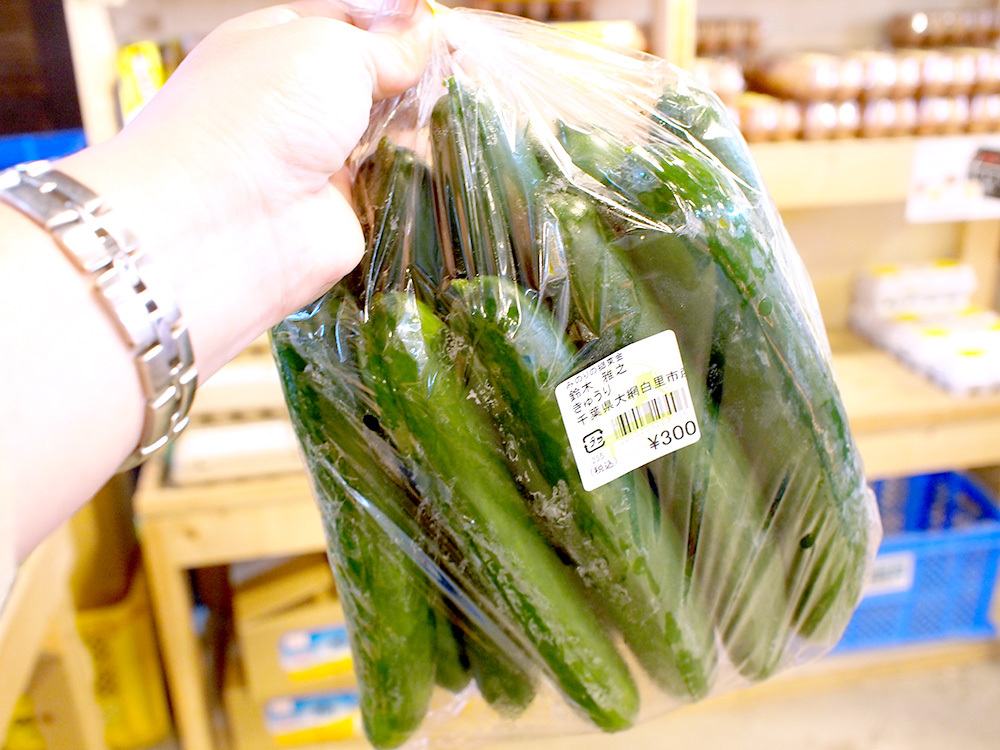 朝一番ですと、お買い得な大袋パックが並んでいたりして、今日のキュウリ大袋は12~13本ぐらい入ってこのお値段!です。