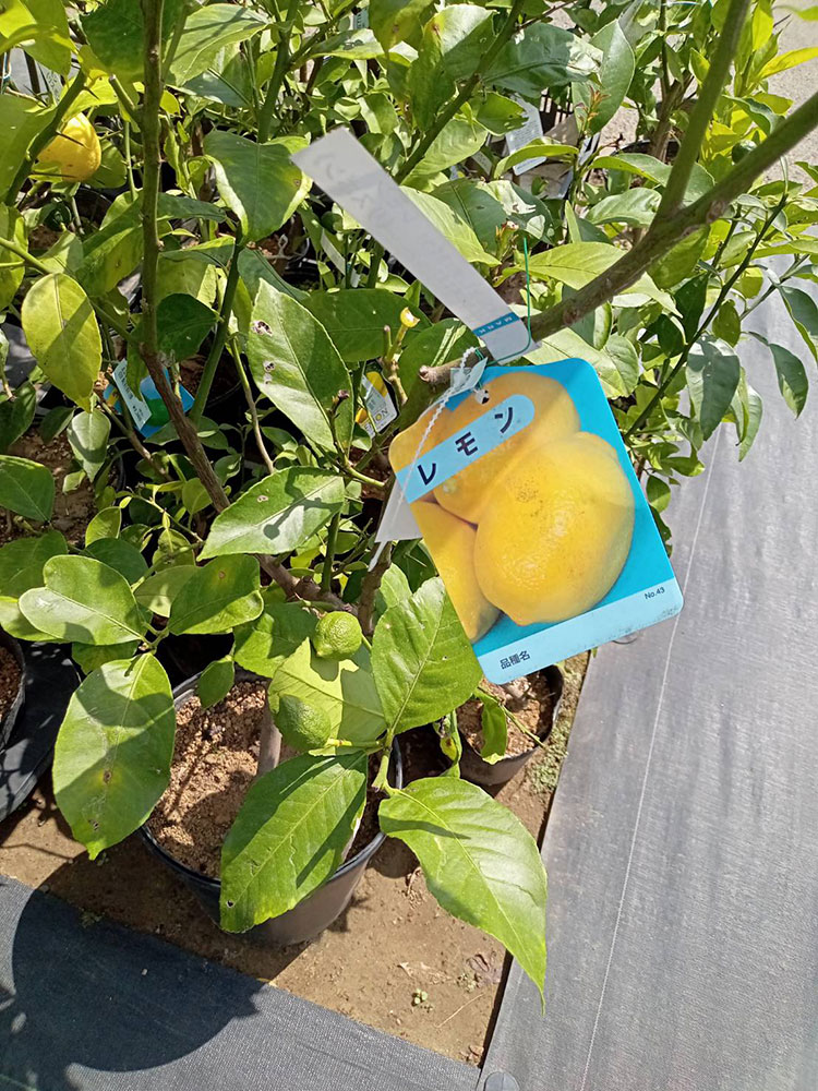 レモン、みかん、パッションフルーツの果樹苗は、すでに実がついています。今からお庭に植えて、レモンは10月ごろが収穫の時期が来そうですよ。