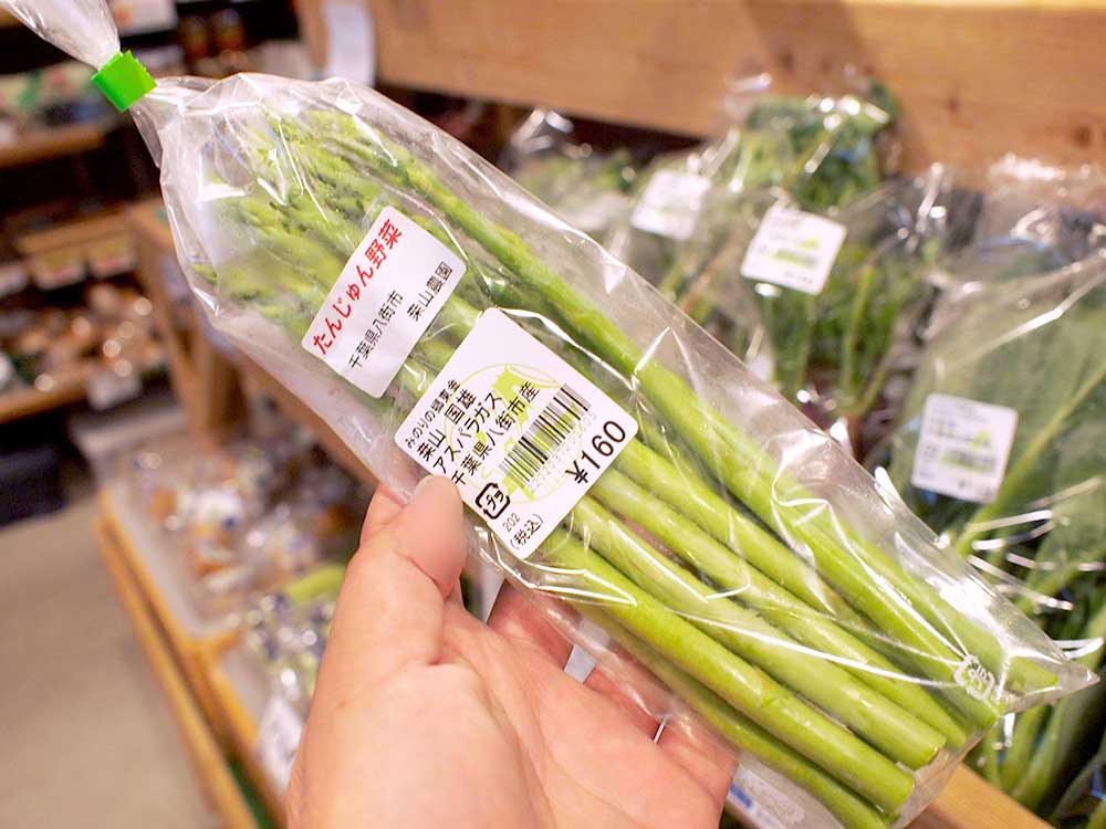 本日の美味しそう!は地元産の枝豆、アスパラガスは柔らかでおいしそう。