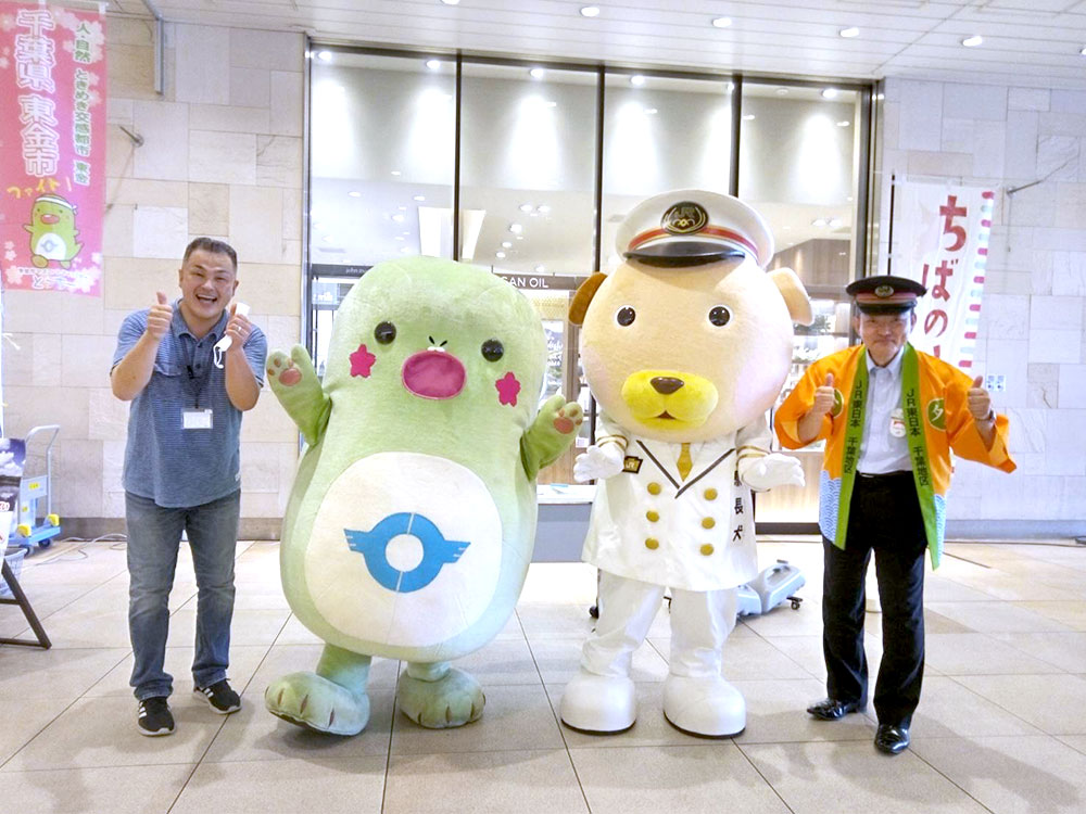 売り場では、道の駅 みのりの郷 東金の駅長や東金市のマスコットキャラクター「とっちー」、JR東日本千葉支社マスコットキャラクター「駅長犬」と、大網駅長も初日に登場!