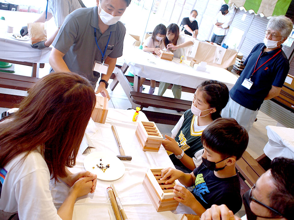 道の駅 みのりの郷 東金 東金マルシェ外テラスにおきまして「2022森林(もり)を学ぼう!夏休み木工教室」の第2回目が開催されました!