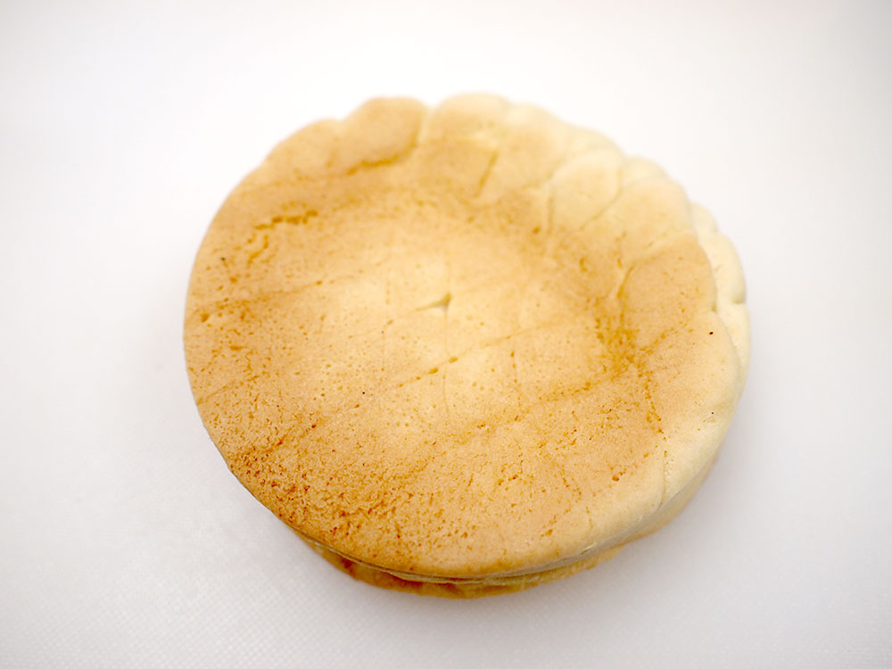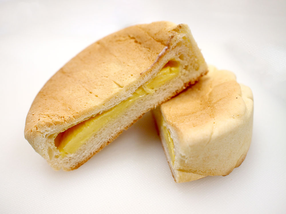 表面はメロンパンのようなカリカリがのっていて、中はかぼちゃの香り漂うプリンクリームです。