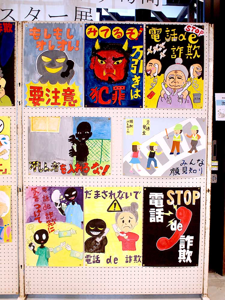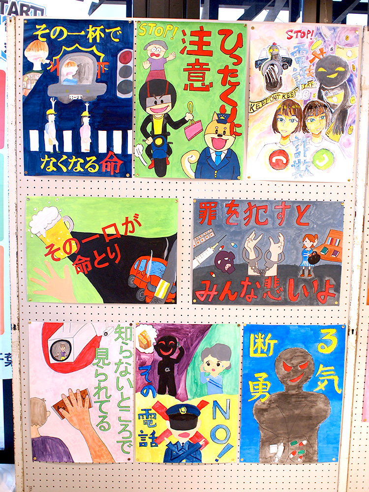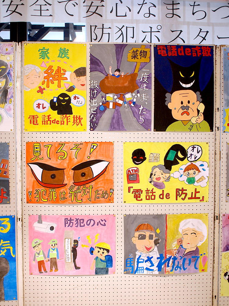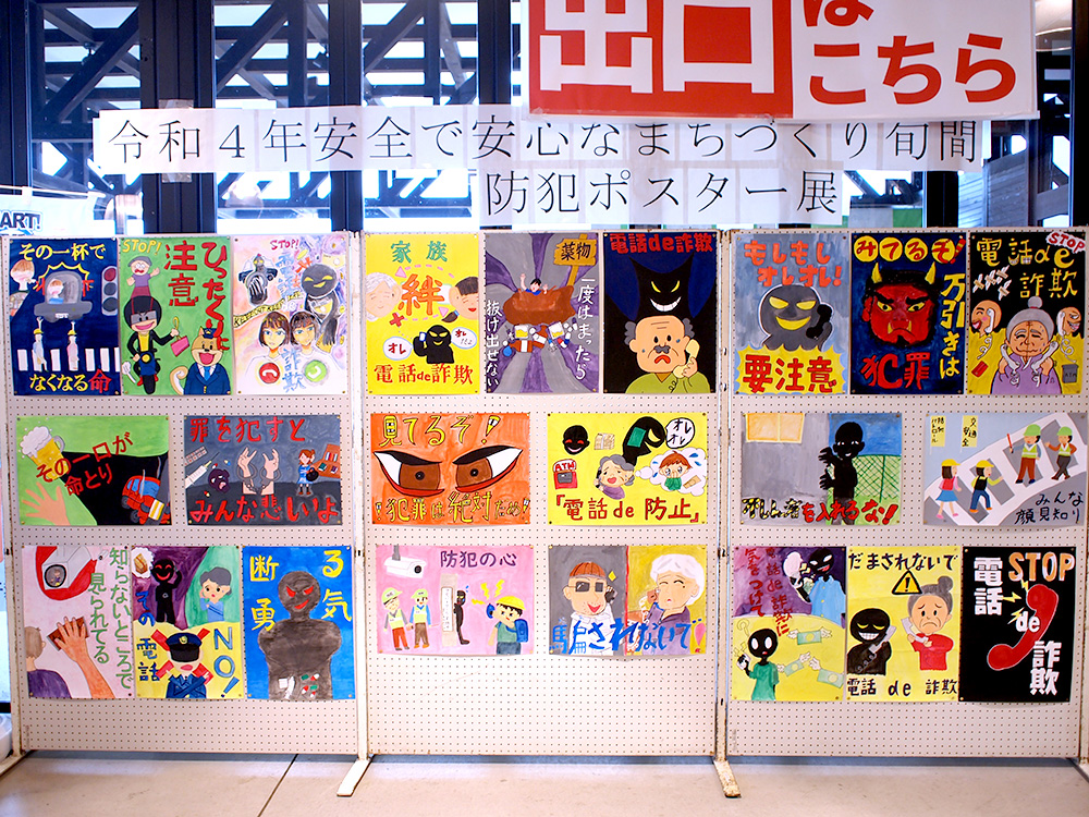 が開催されています。千葉県・千葉県安全安心まちづくり推進協議会「安全で安心なまちづくり旬間」行事の一環といたしまして期間中、東金市内の小・中学生が描いた「身近に潜む犯罪」をテーマに展示されています。