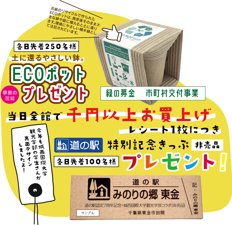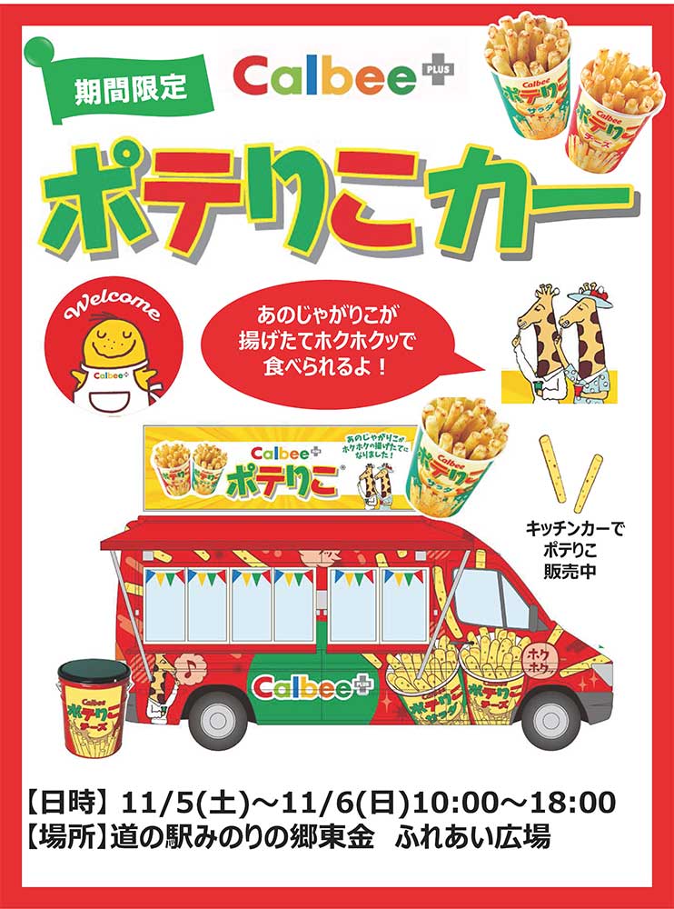 「全館で千円以上のお買い上げレシート1枚で先着プレゼント」やステージイベント、道の駅初出店のスペシャルキッチンカー『ポテりこカー』も来る!