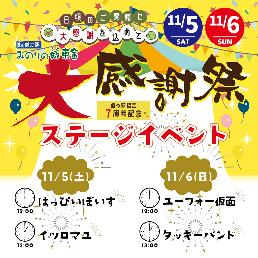 また、明日2022年11月5日(土)、11月6日(日)の2日間は道の駅 みのりの郷東金 道の駅認定7周年『みのり大感謝祭』を開催いたします!