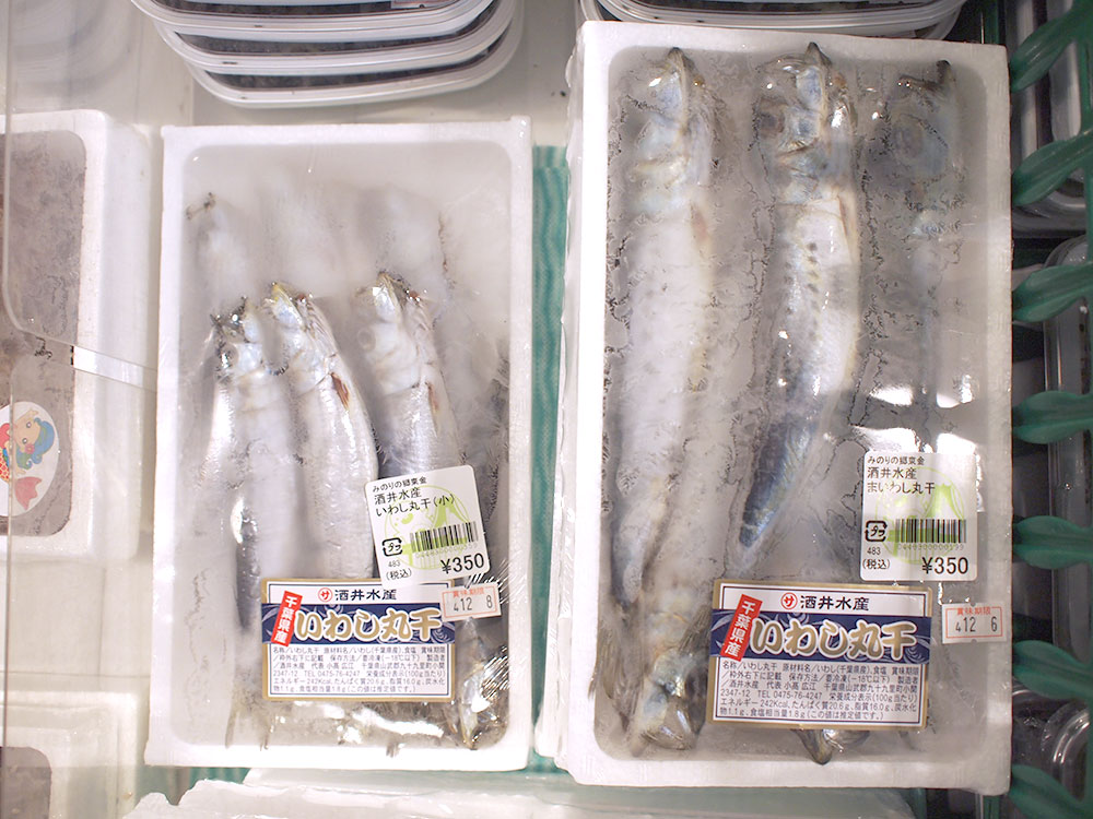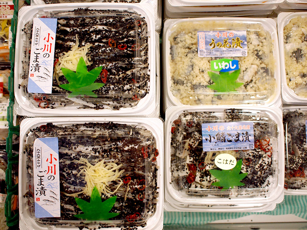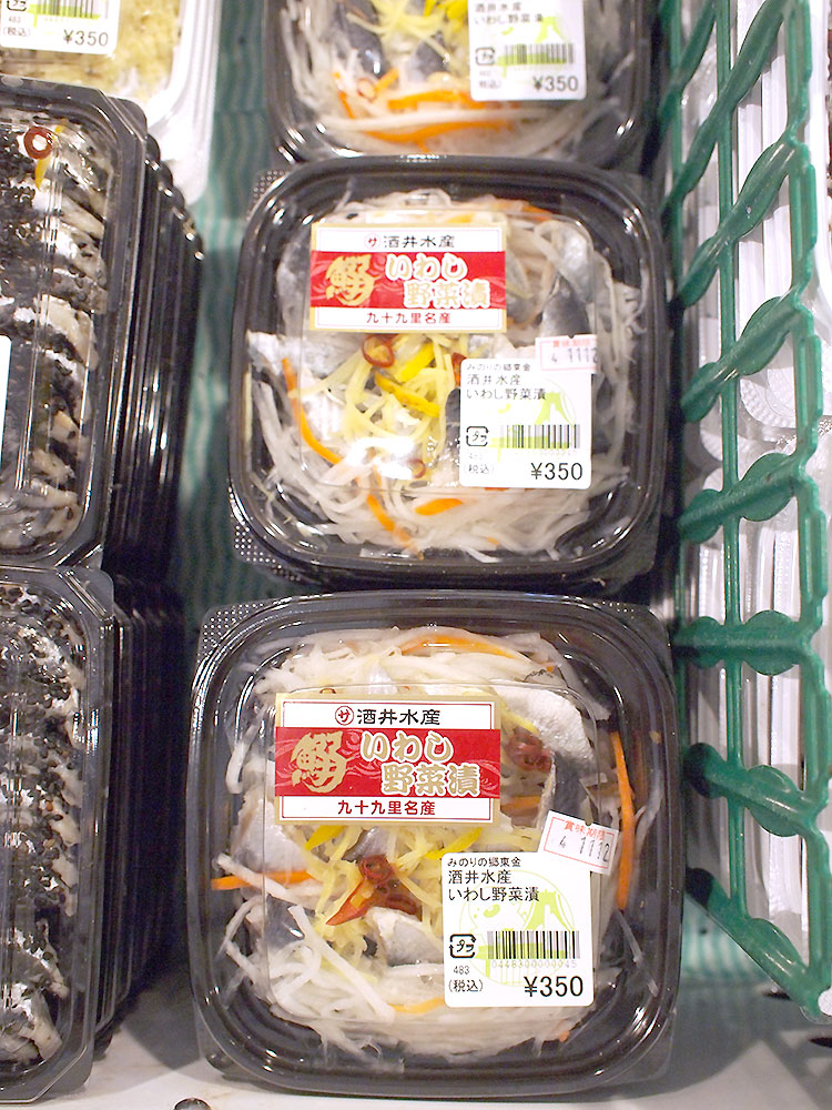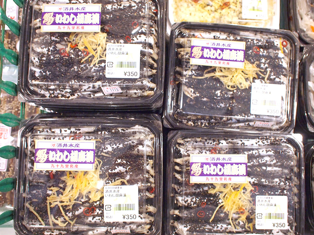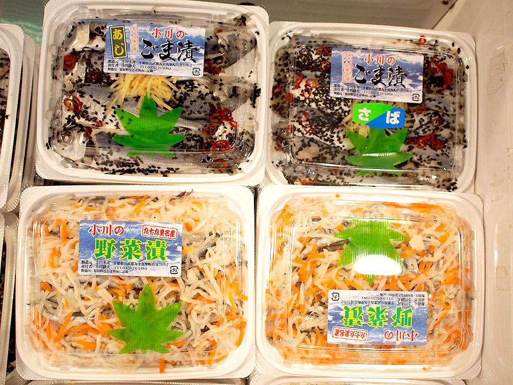 そのほかに、イワシやサンマ、サバやアジなど九十九里で獲れた魚を野菜漬けや卯の花漬けなど、九十九里の美味しい加工でずらりと並んでいます。