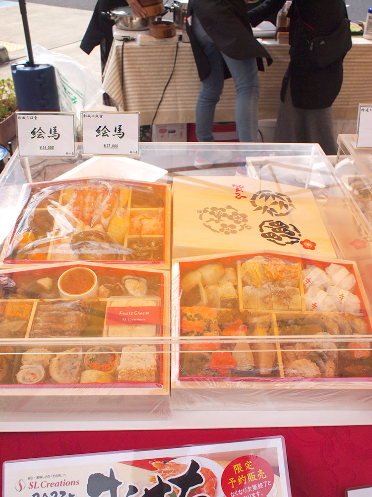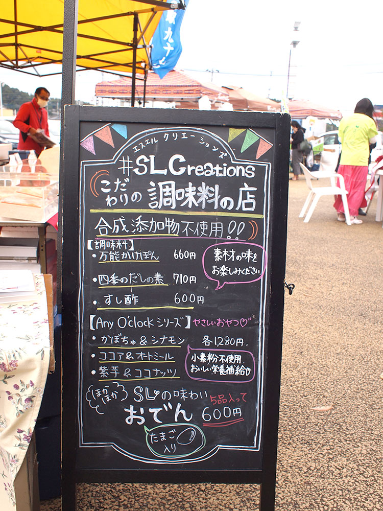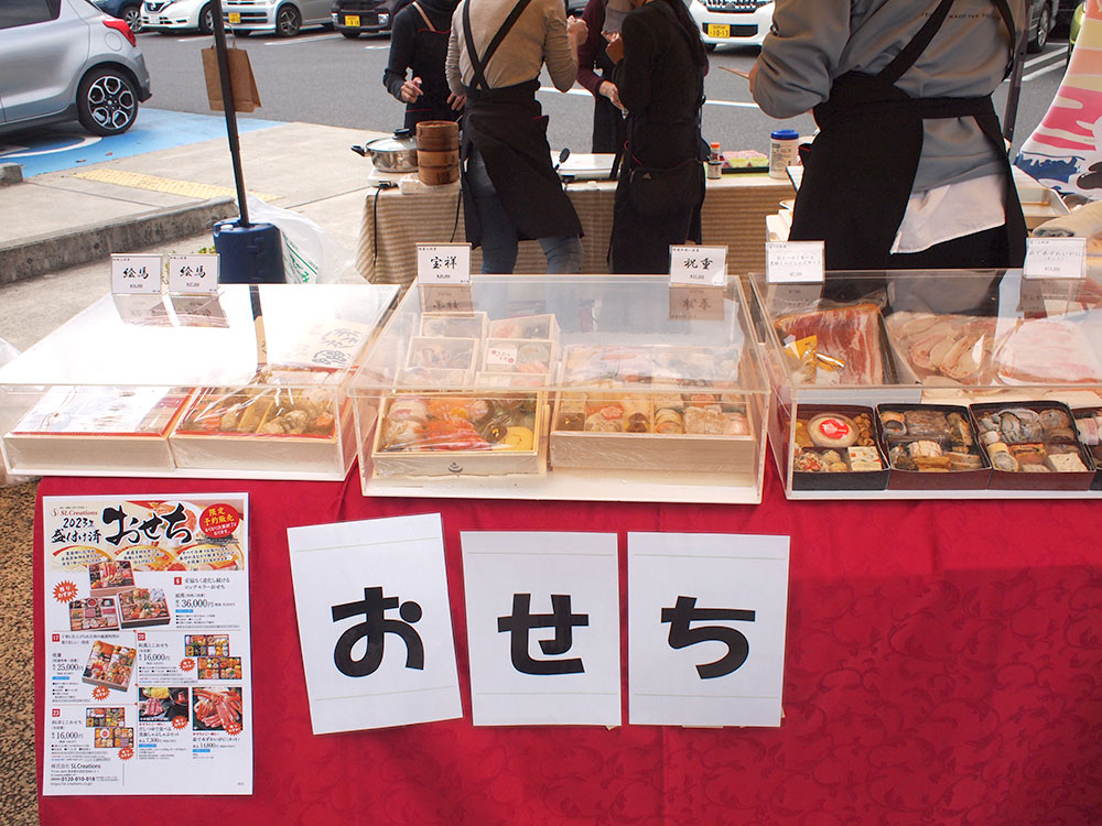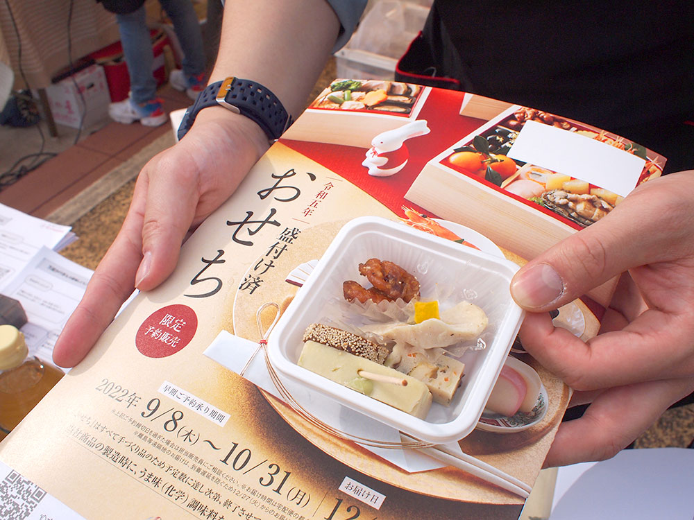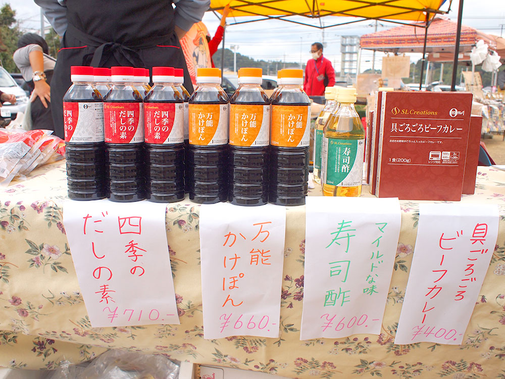 お隣は、化学的合成添加物を使用せずに美味しさを作るSL Creationsさんのおせちのご紹介と、調味料のコーナーです。冷凍おせちが年末に届くので、お正月に解凍してテーブルの上に置くだけ!試食もあってうれしいですね。