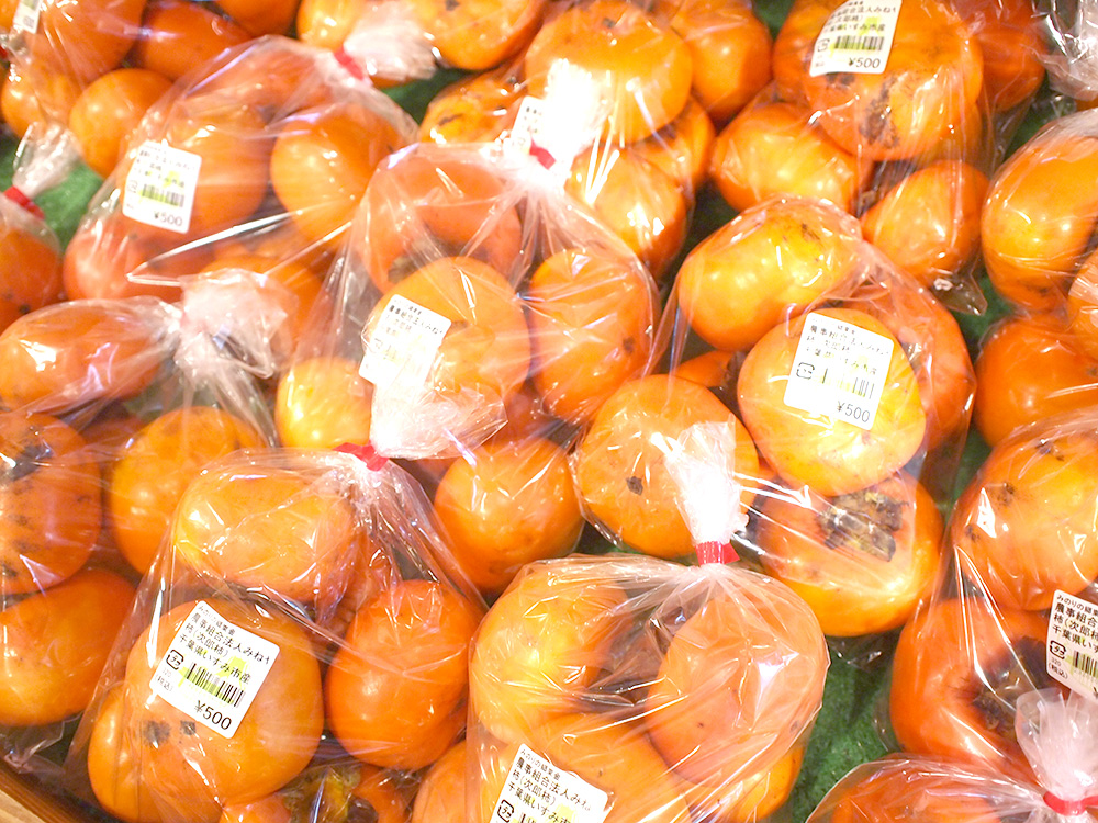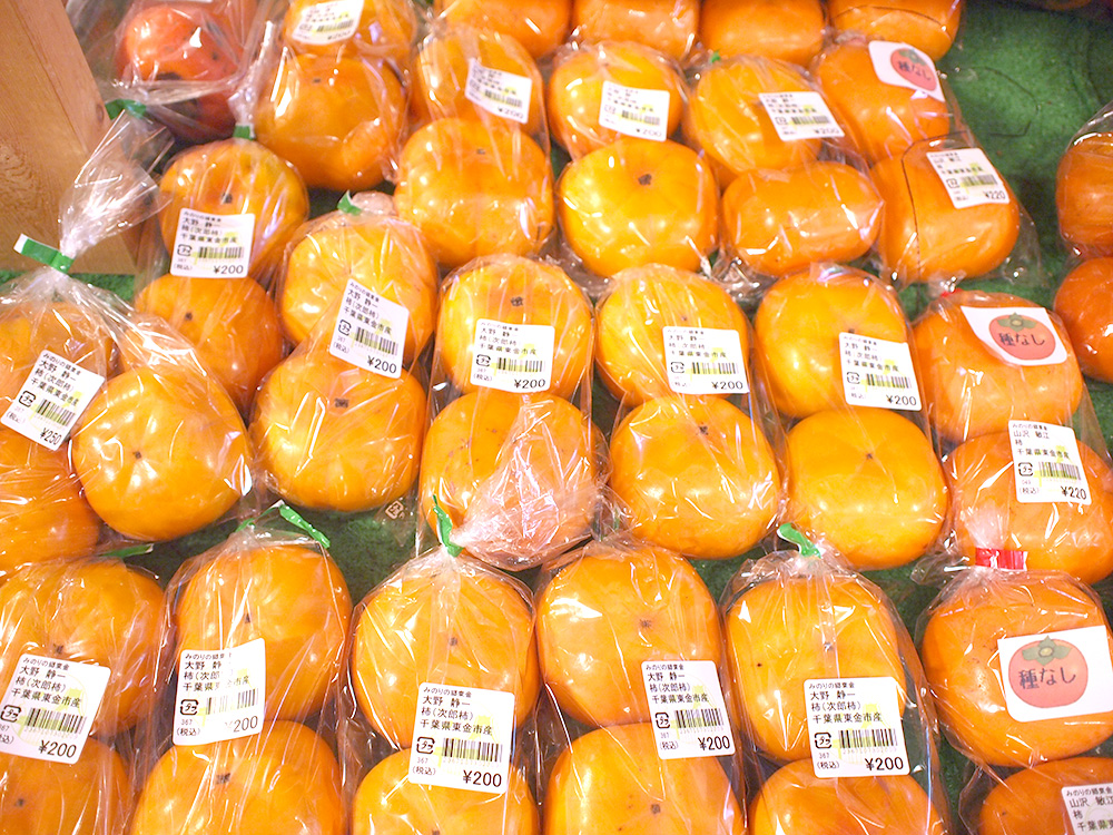 道の駅 みのりの郷東金 東金マルシェの今の季節は柿がいっぱい!です。