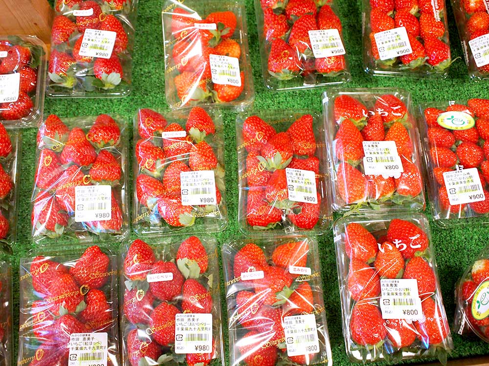 東金いちごが少しずつ増え始めています。魅惑のフラクタル構造ロマネスコ、カリフラワーの種類でイタリア野菜です。生で食べられる柔らかサラダ春菊のほか、お浸しや白和えにも美味しく食べられる若くて柔らかな春菊がたくさん!大きな新生姜も、ご家庭でスライスして甘酢漬けはいかがでしょうか?