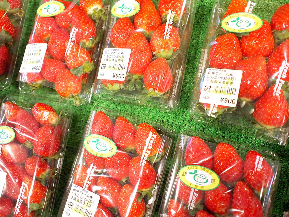 道の駅 みのりの郷東金 東金マルシェの本日の様子です。東金いちごはこんな感じですよー。