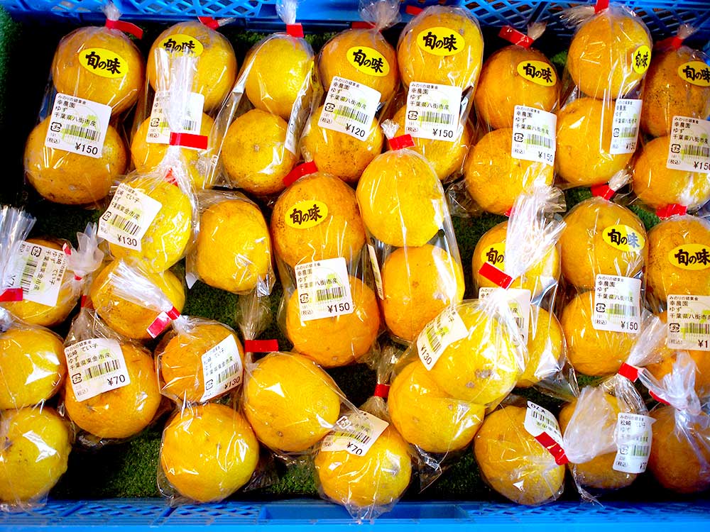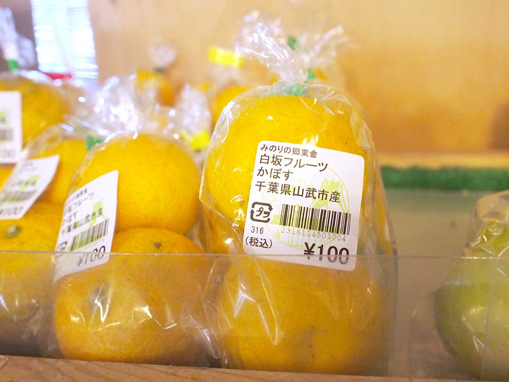地元産の黄ゆず、レモン、カボスなど並んでいます。
