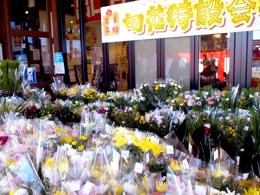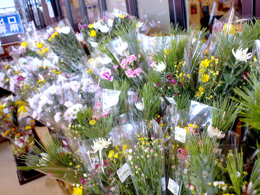 道の駅 みのりの郷東金 東金マルシェでは、お正月用の切り花特設コーナーと、お正月のおめでた食材コーナーをそろえたコーナーをご準備いたしました。