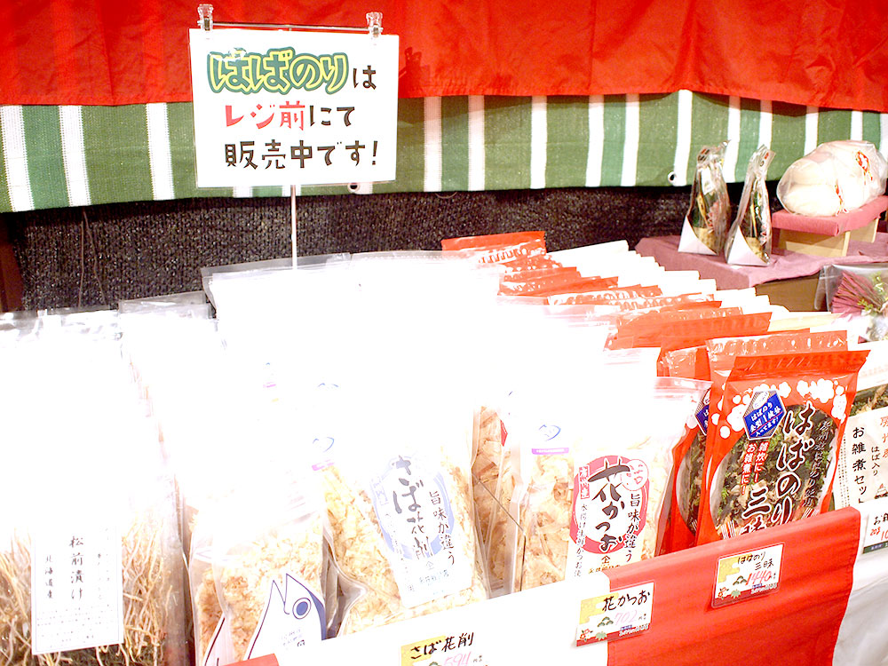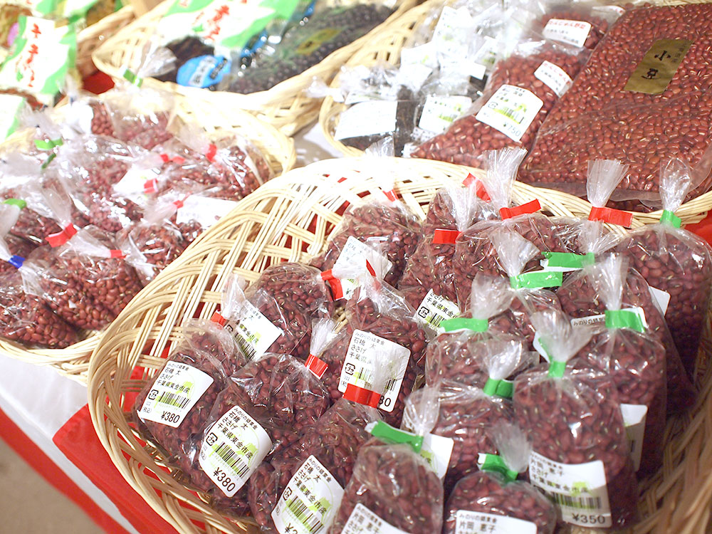 東金マルシェ入口右手に、お正月のおめでた食材をズラリ!と並べました。