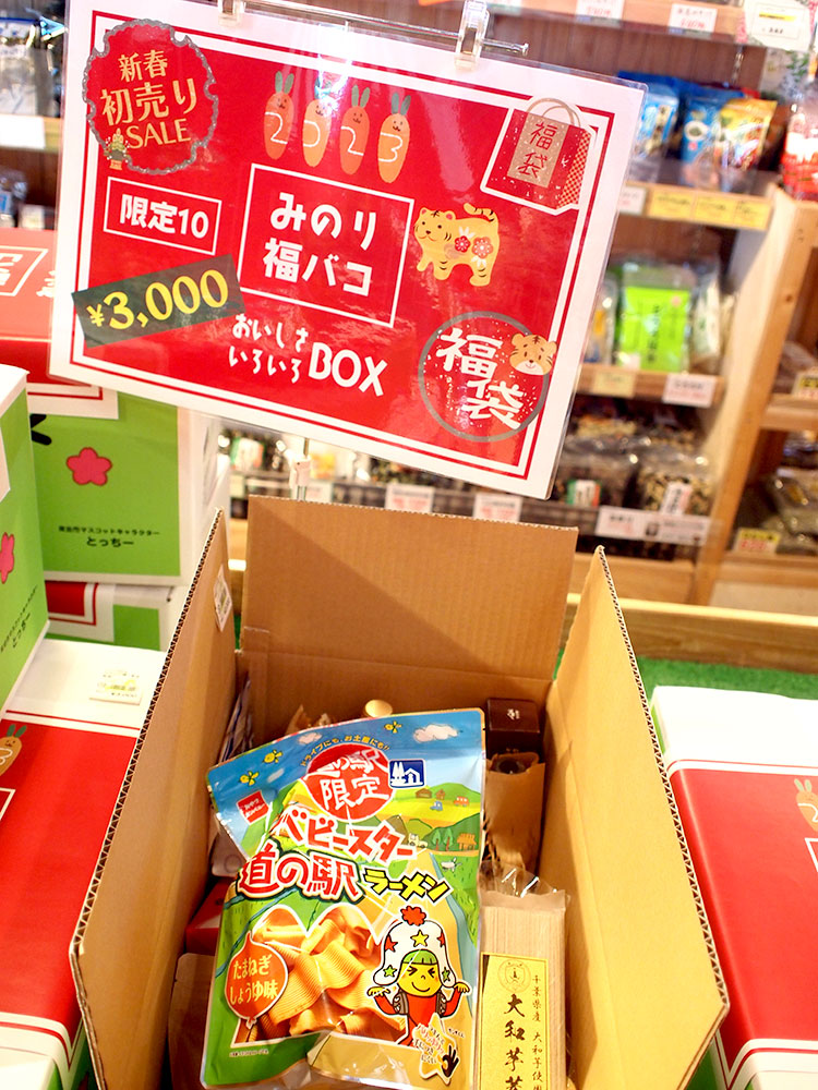 東金マルシェ入口では、福箱・福袋をご用意しております。(結構な速さで減ってきています!)