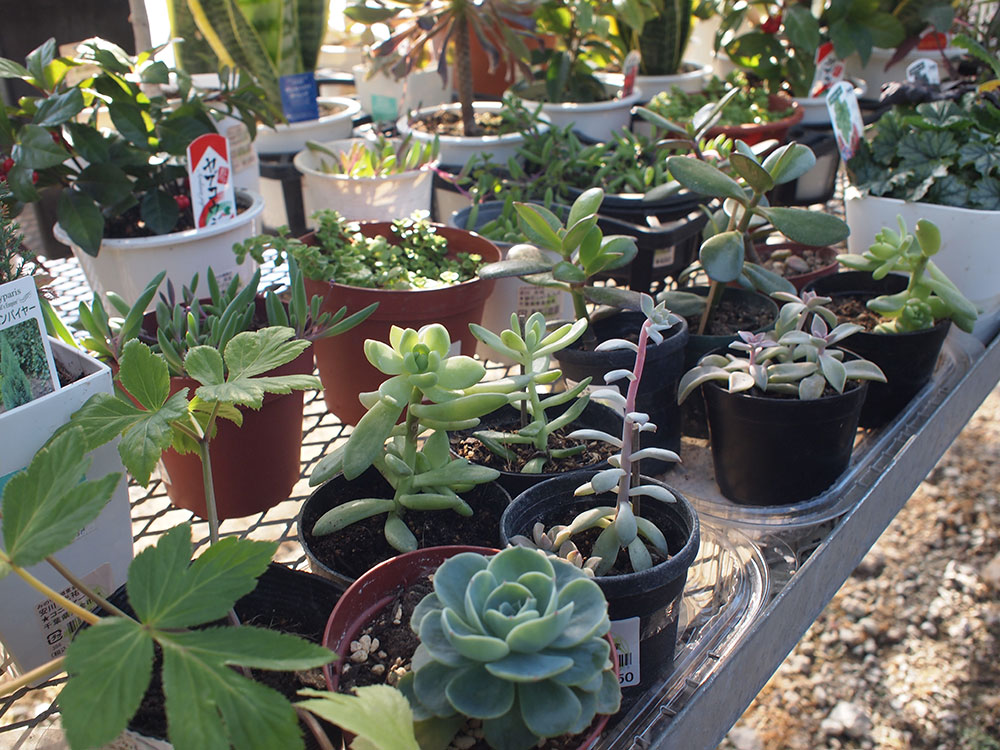 そのほか、パイプハウスの中では、いろいろなサイズで本当に多種多様な多肉植物がズラリ並んでいます。