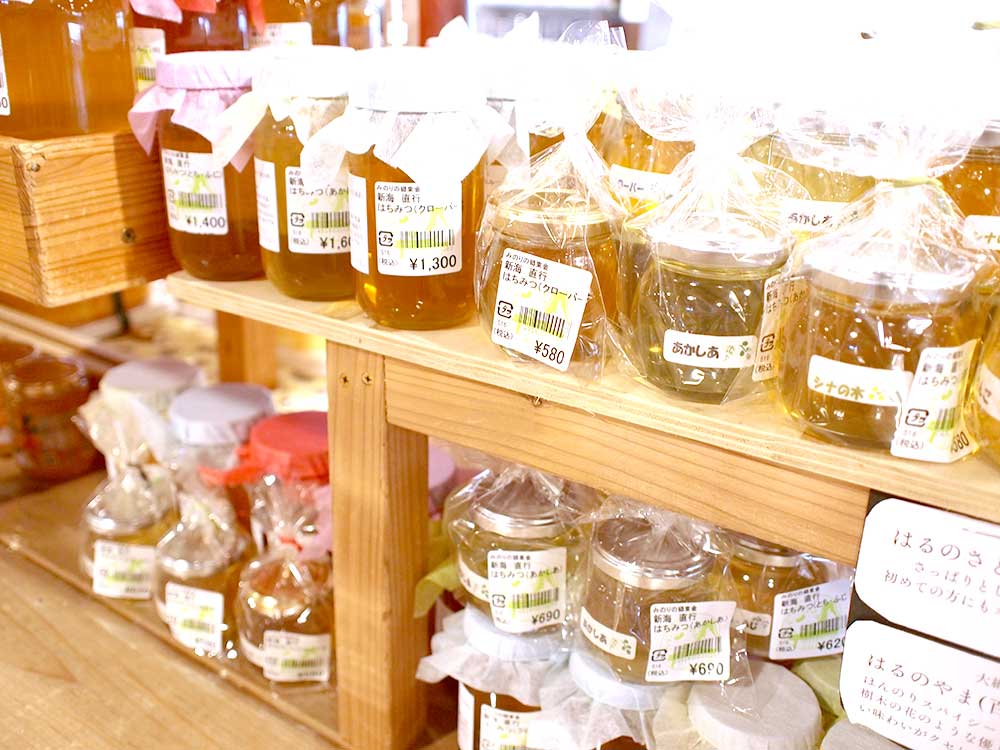 今朝は新海養蜂園さんのはちみつがズラリと並びました。