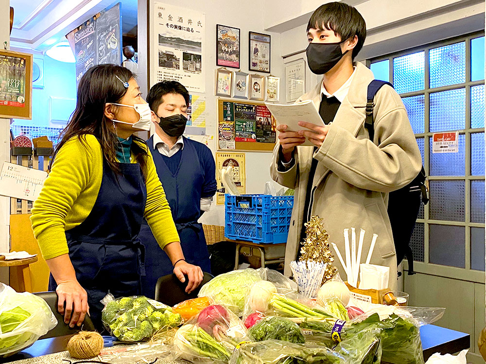 この農産物は、2023年1月21日(土)~22日(日)に東金市街地(八鶴湖周辺)で開催されました城西国際大学観光学部企画のイベント「7200秒の東金フィルム-光と映像で時を超えて-」で、イベントに参加をされるお客様に提供される料理に活用するために、まずは東金駅前のサントス・カフェさんと学生さんが一緒にメニュー開発を行っていました。