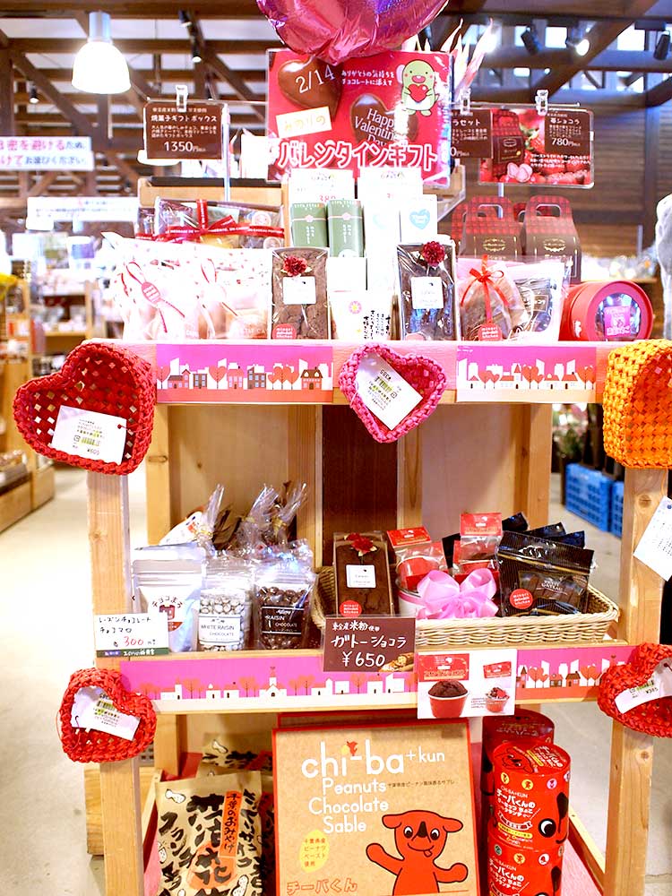 東金マルシェ入口を入ってすぐのところは「バレンタインデーギフト」コーナーができました!