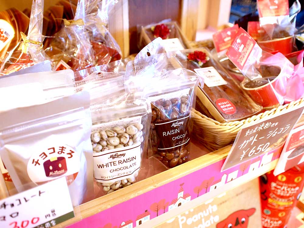 みのりdeli*deliキッチン(東金市六次産業化拠点施設)で作っている東金産米粉のスイーツを中心に、東金マルシェで人気のチョコレートスイーツをズラリと並べました。