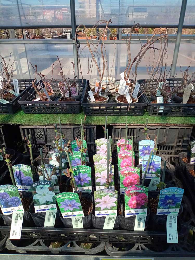 道の駅 みのりの郷 東金 緑花木市場パイプハウスに、毎年人気の「湘南のクレマチス」が入荷しました!