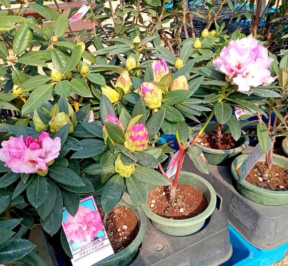道の駅みのりの郷東金 緑花木市場で開催中の「シャクナゲ・つつじフェア」の様子をお知らせします。