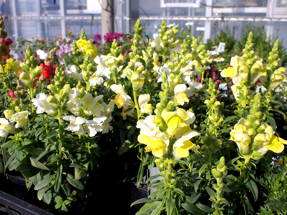 フワッと丸い花が可愛い金魚草、可憐なピンクの小花が愛らしい宿根のネメシア、これからどんどん鮮やかなスカイブルーの小花が広がるネモフィラ。