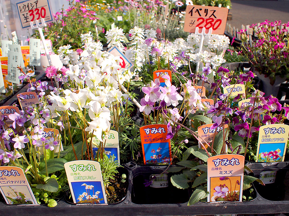 道の駅みのりの郷東金 緑花木市場の春のガーデニングにピッタリな花苗の様子をお知らせします。