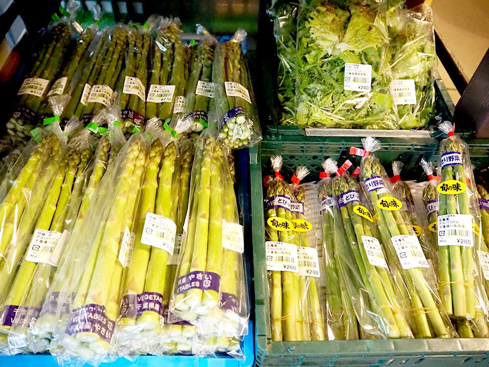 そのほか、タラの芽などの山菜やアスパラ、エシャレットなどの春っぽい農産物もズラリ!