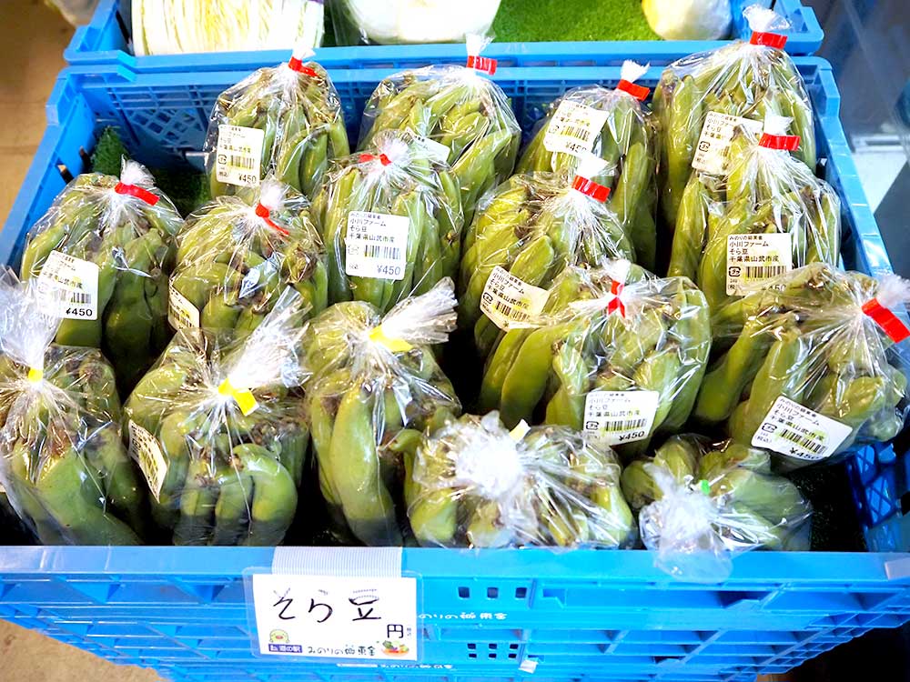 初夏の味覚、ソラマメが少しずつ並び始めています。わずかですが、地元産ズッキーニも並び始めました。
