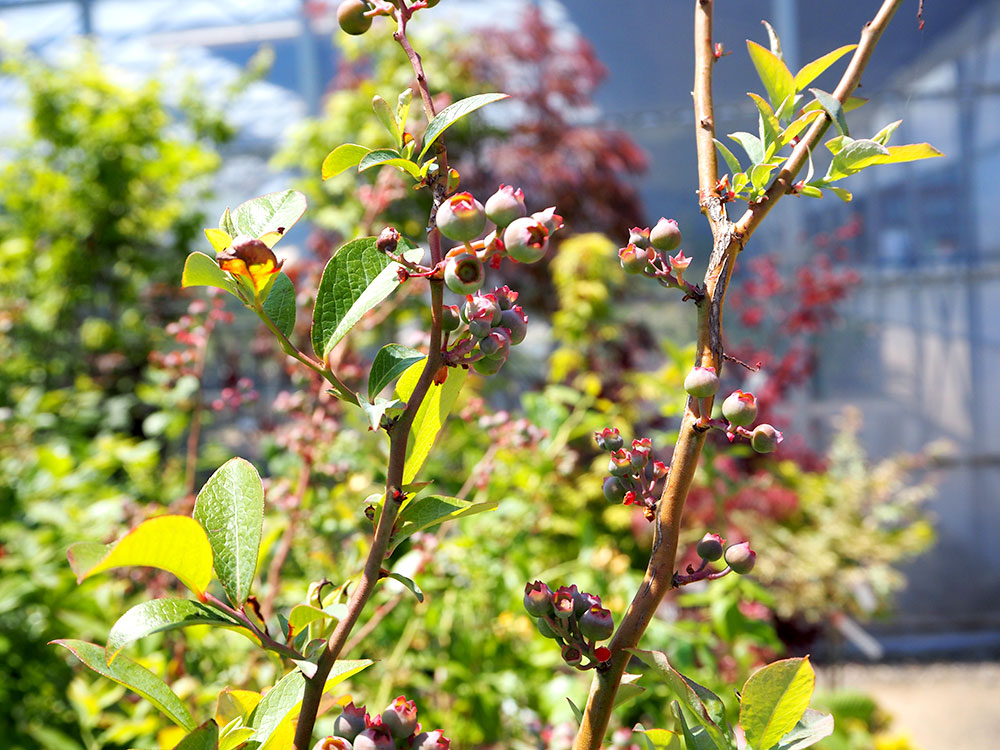 また、柑橘の苗木が今の時期、お花がいっぱい!です。ブルーベリーも早生種は結実した苗木がございますよ。