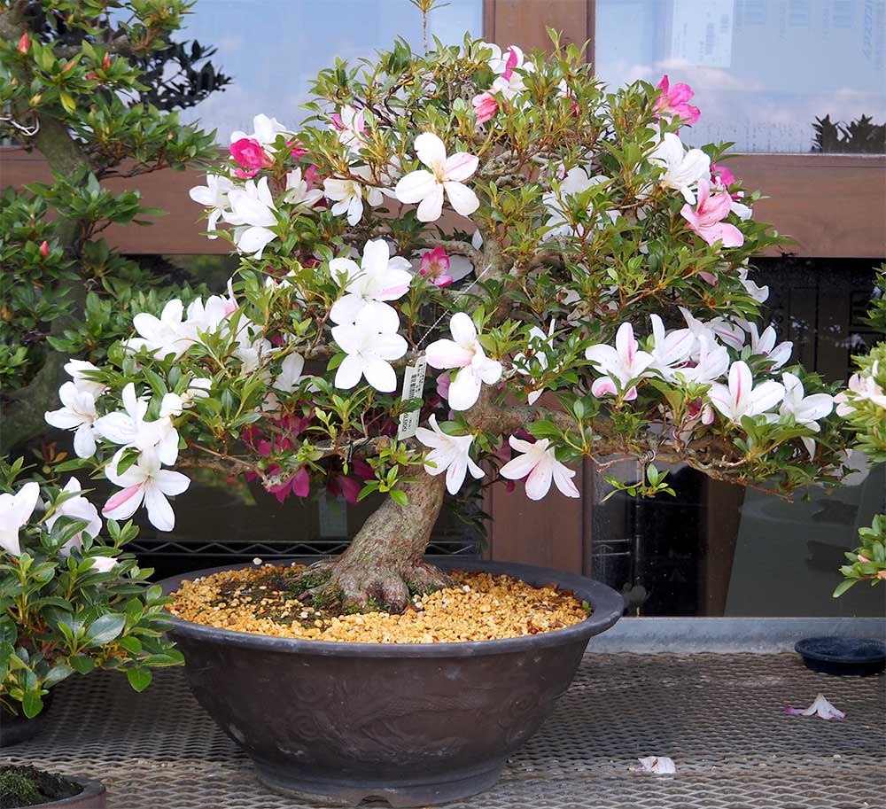 道の駅 みのりの郷 東金 緑花木市場では、今年もサツキ盆栽特設展示が始まりました。