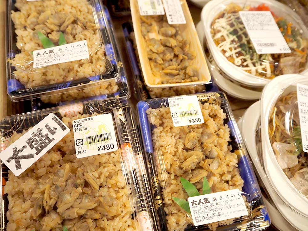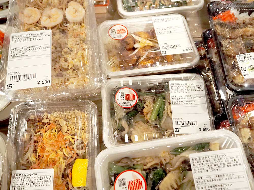 本日もお弁当いろいろございますね。地元の飲食店の美味しさ詰まったお弁当や農家のおかみさんが作るお赤飯、道の駅 みのりの郷東金のレストラン「とっチーノ」の人気メニューもお弁当になって並んでいます。お昼はどれにしようかと迷います…。