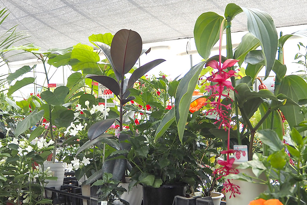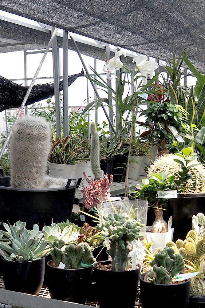 また、人気の観葉植物や多肉植物も大小、品種も様々で見ごたえがあります。