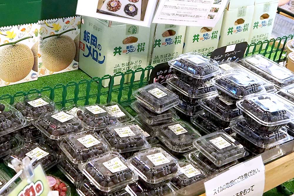 のキャラクターの等身大ポスターを張らせていただこうと考えているところです。さて、東金マルシェに旬のブルーベリーがたくさん届きました。