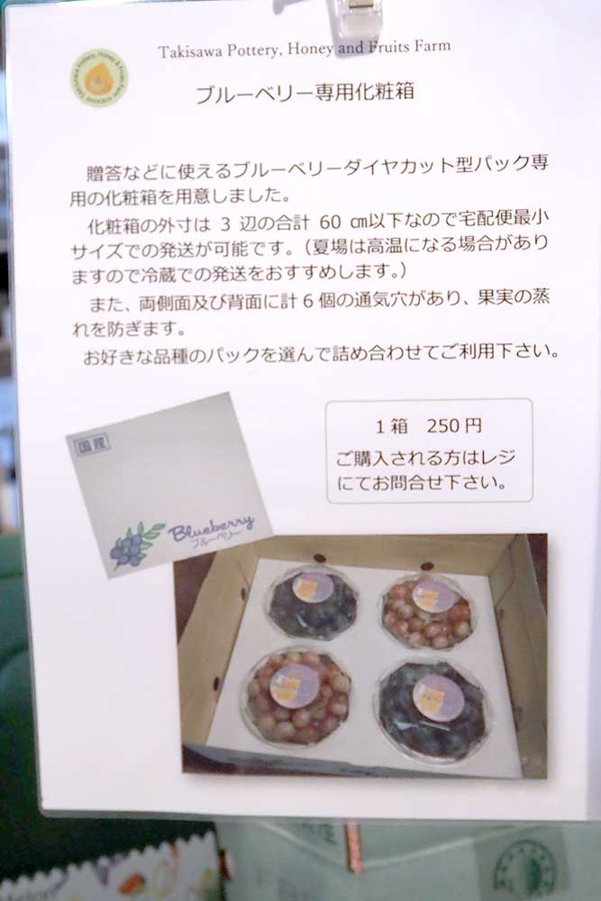 店頭にはこのような品種の紹介や、ギフトボックスの案内などもございます。