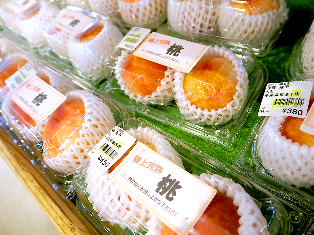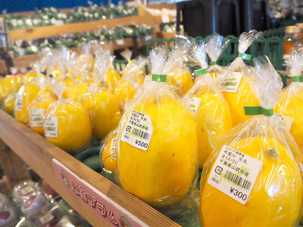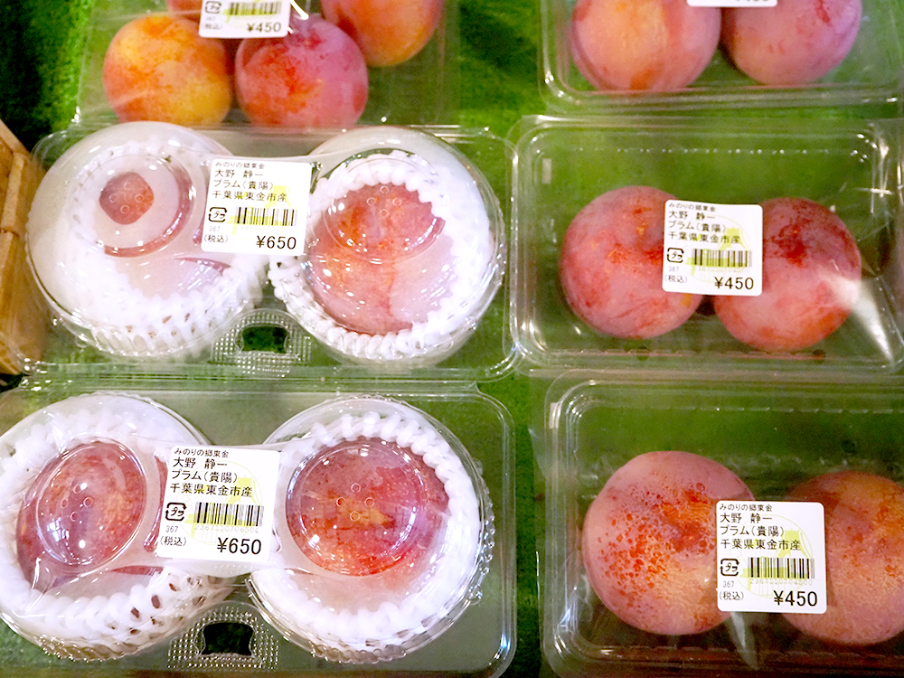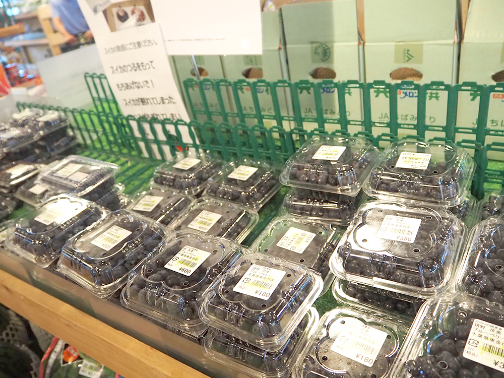 地元産のブルーベリー、プラム、桃、まくわうりがズラリと並びました。