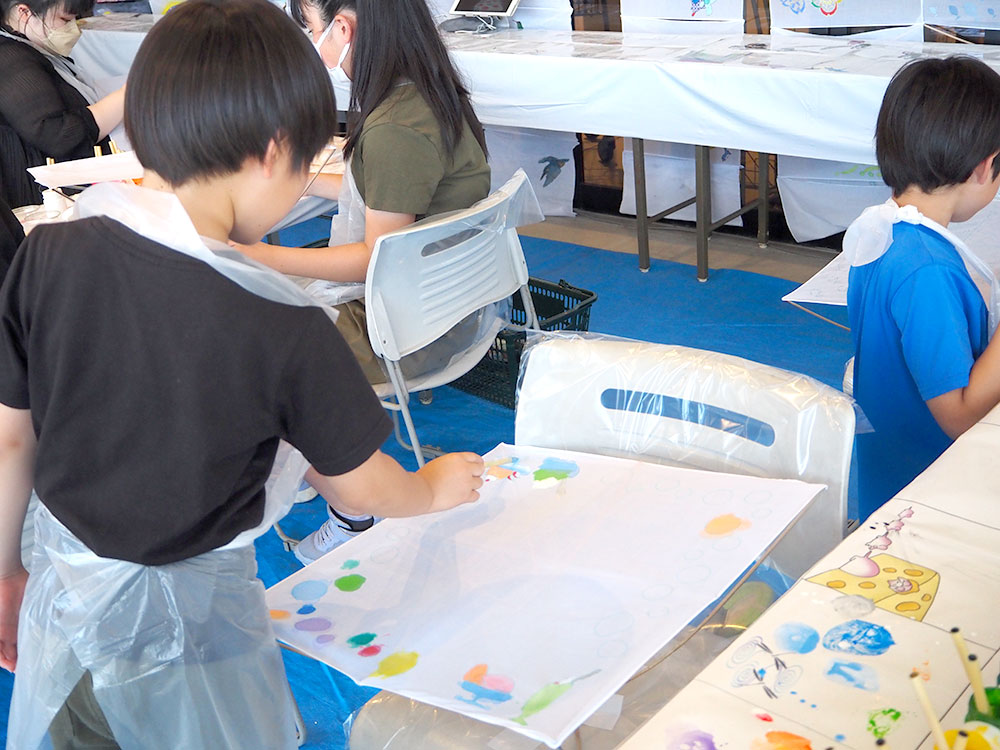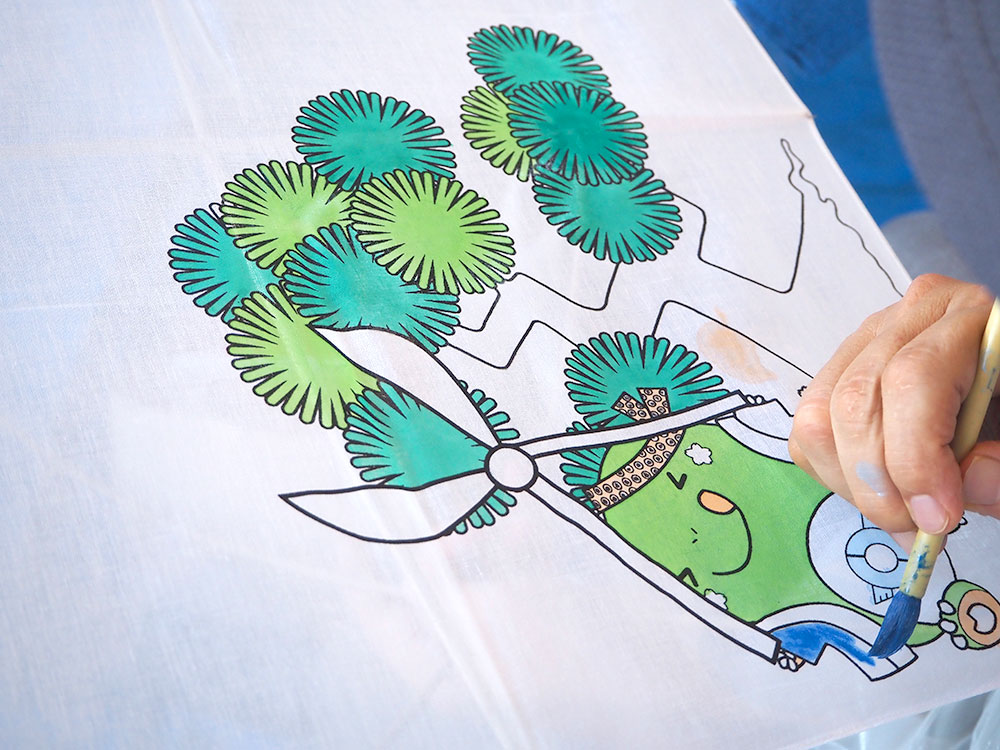 本日開催中の「ハンカチ友禅染体験教室」では、皆さんが思い思いの色でのびのびと、集中して色を入れています。
