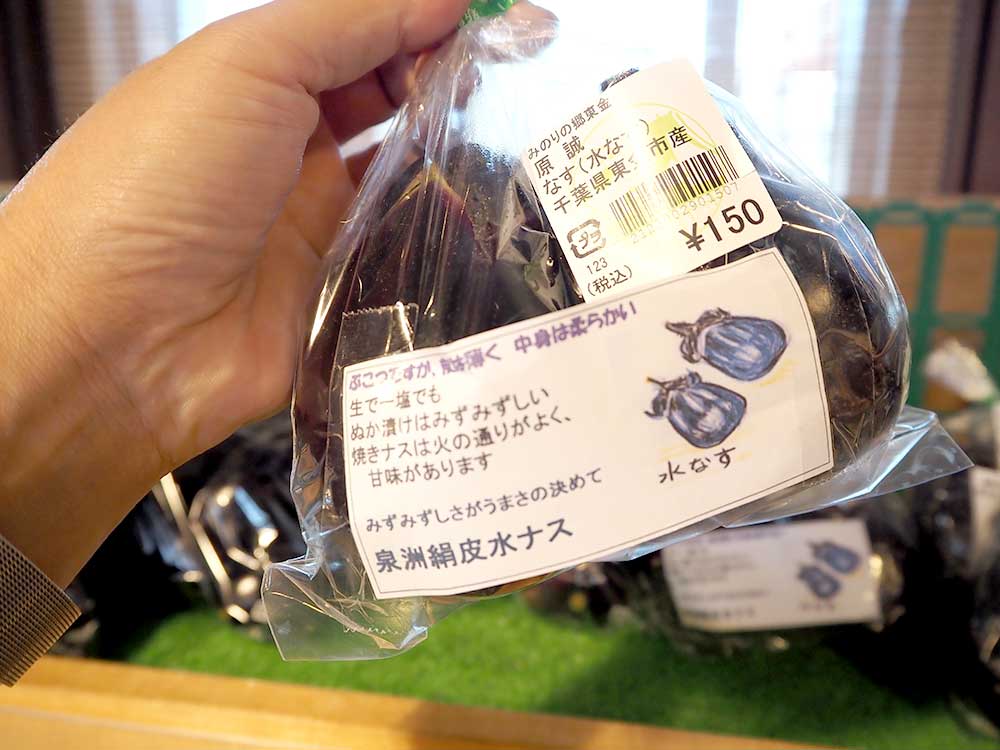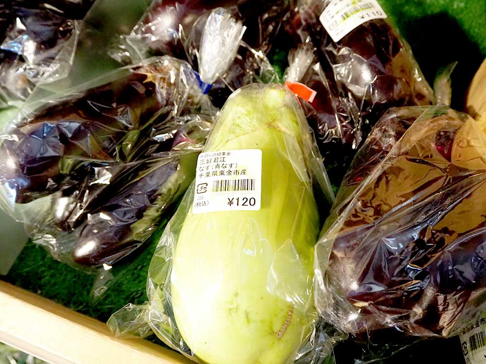 ナスも見慣れた黒光りのナスのほか、イタリアンな雰囲気を醸しているナスや、希少なナスも並んでいます。