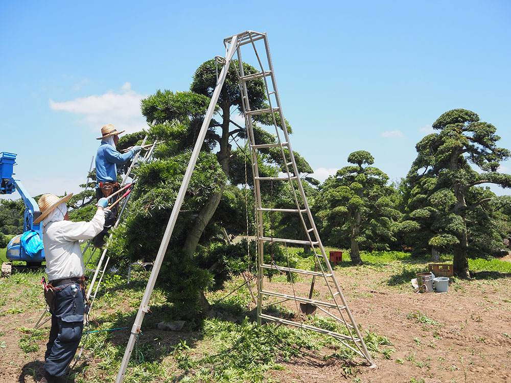 夏のこの時期は、植木のまち東金では植木職人さんたちが刈込みをする季節。