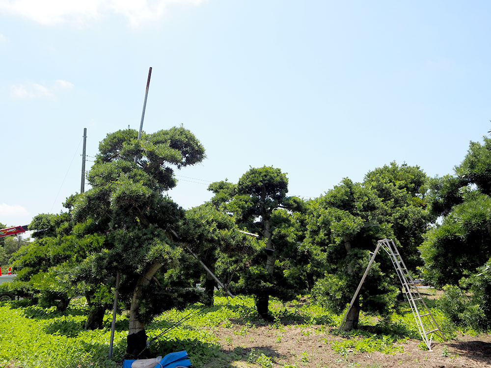 7月中旬、東金市内にある大村園緑化さんでは炎天下に植木職人さんたちがマキの刈込みをしていました。