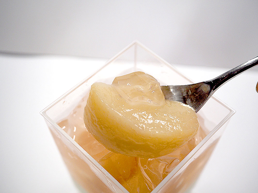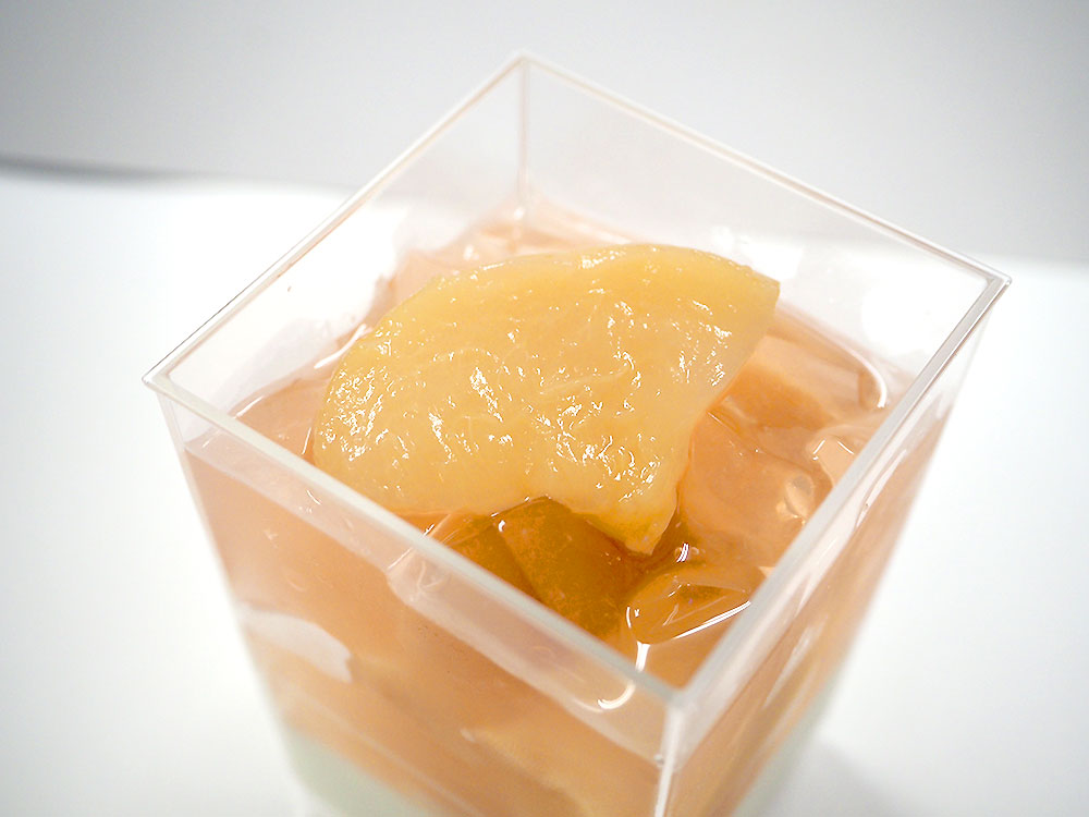 東金産の完熟桃をコンポートにして、みずみずしいゼリーに仕立てました。