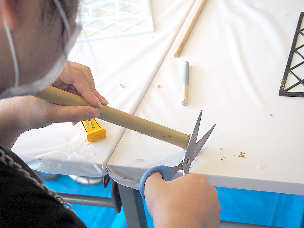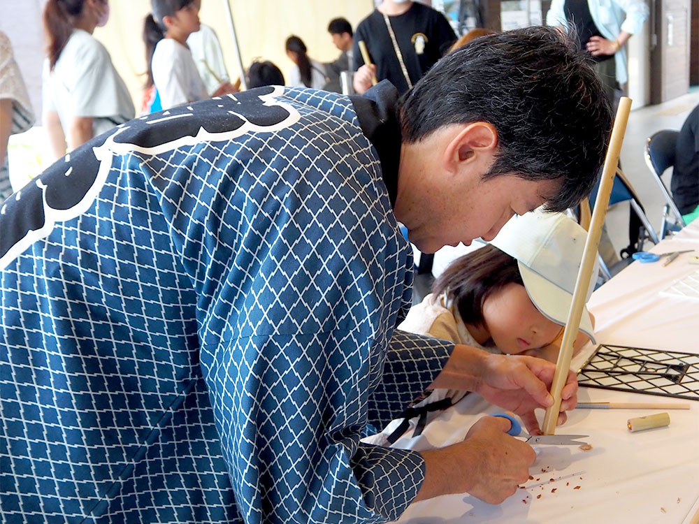 ちびっこの皆さんたちは自分たちで作った「篠笛」を実際に鳴らしてみるところまで今日は体験します。
