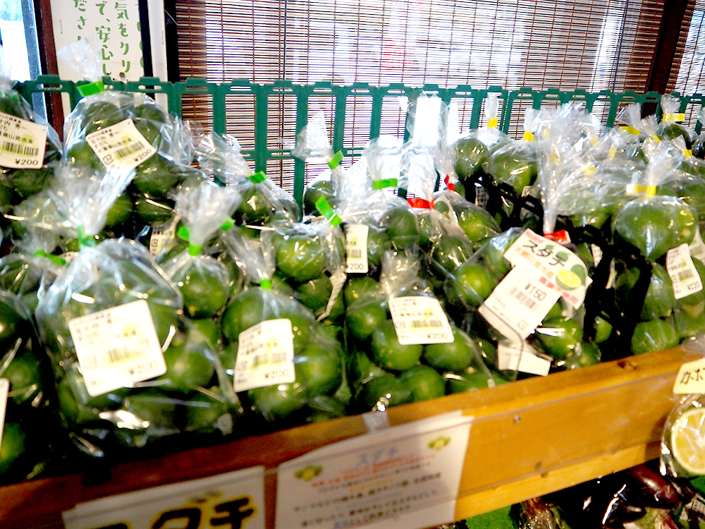 店内入ってすぐのところには、青いカボスやレモンがたくさん並びました!