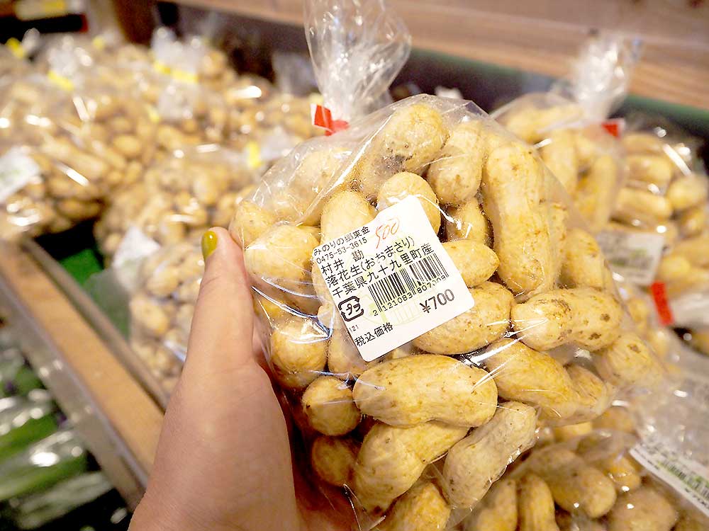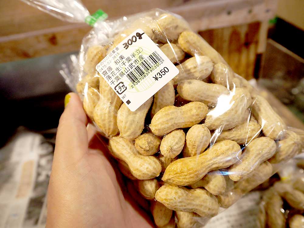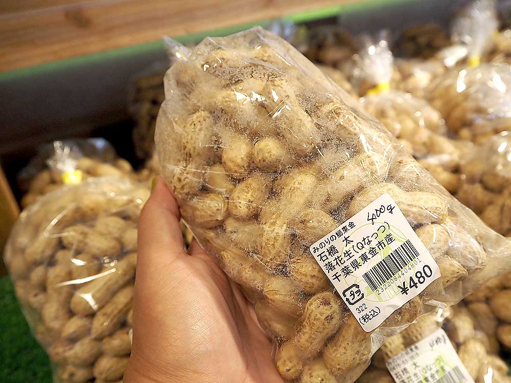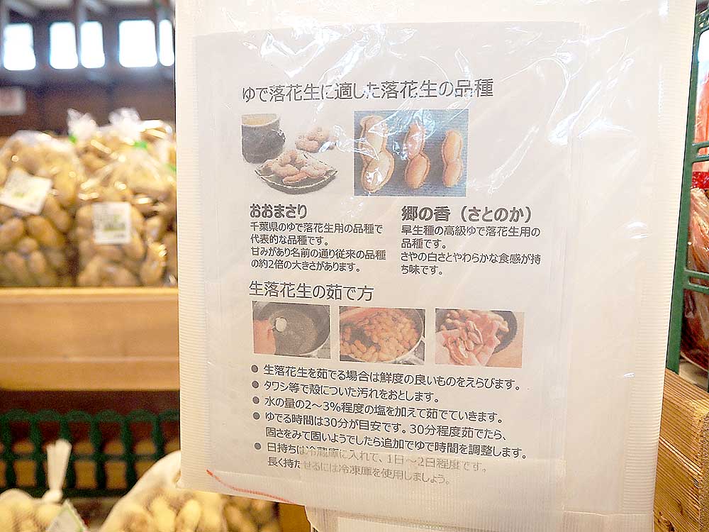 ゆで落花生としてスタンダードになったおおまさりのほか、千葉県新品種の落花生Qなっつ、千葉半立も生落花生で並んでいます。