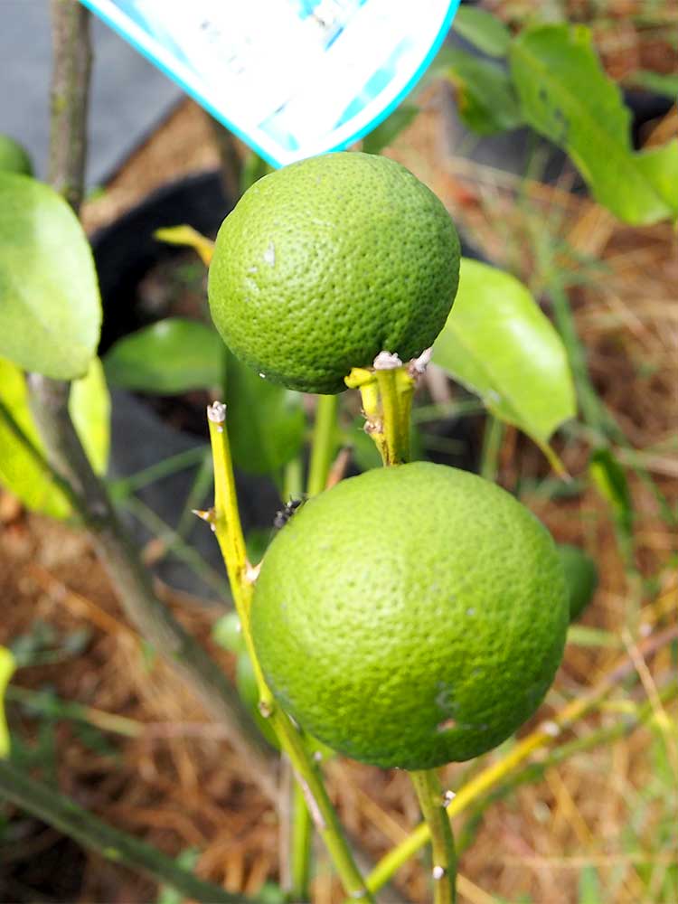 圃場の果樹苗は、柑橘系が青い実をブラブラさせています。